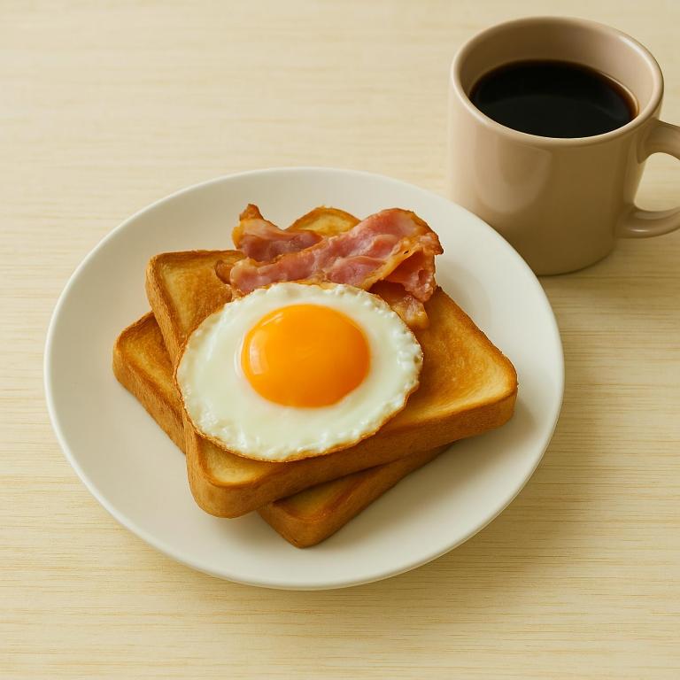 豆から挽く香り高いコーヒーと軽食セット(パン、卵、ベーコン)をご用意しております。