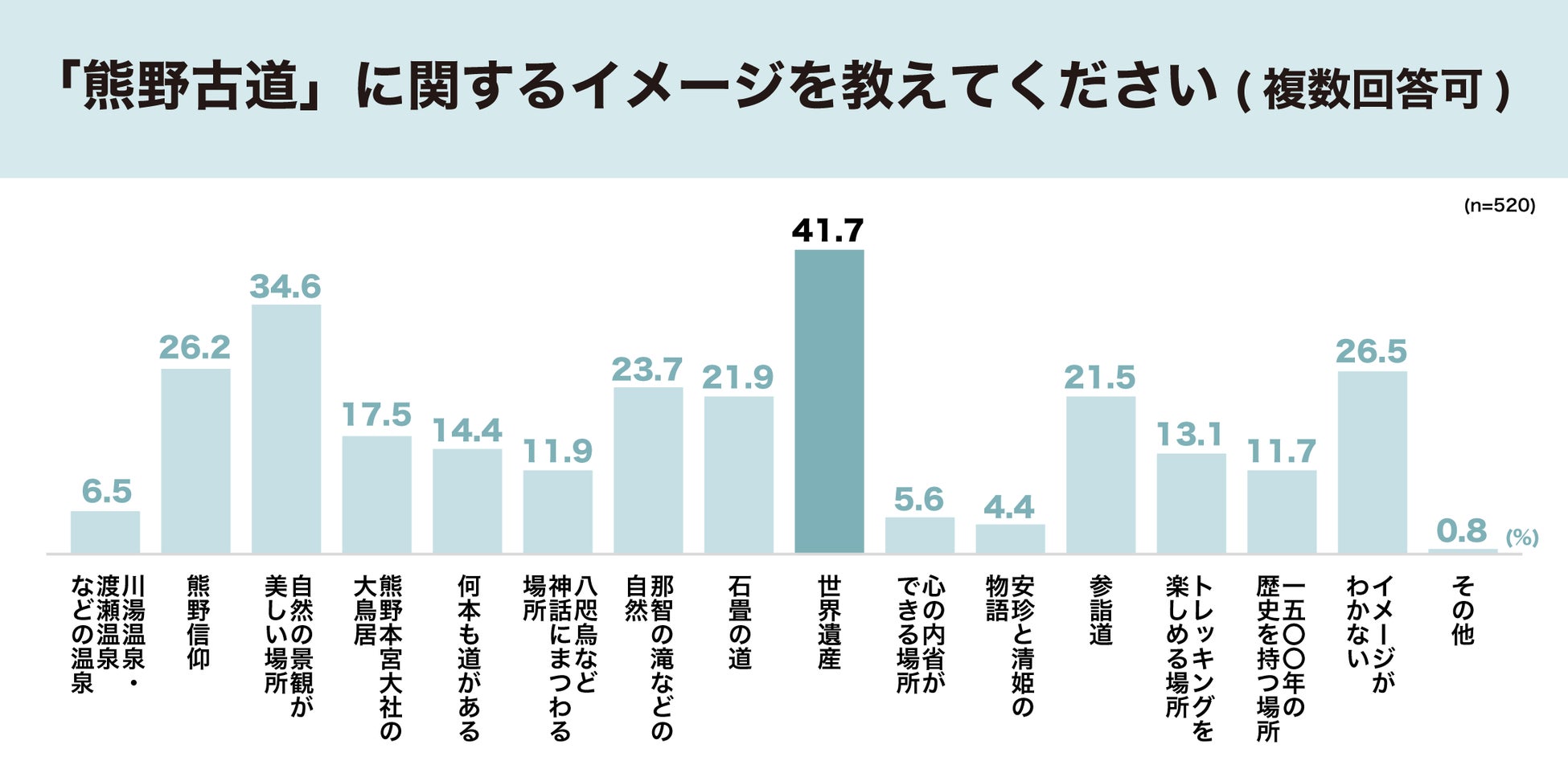 熊野古道から連想するイメージで最多は「世界遺産」