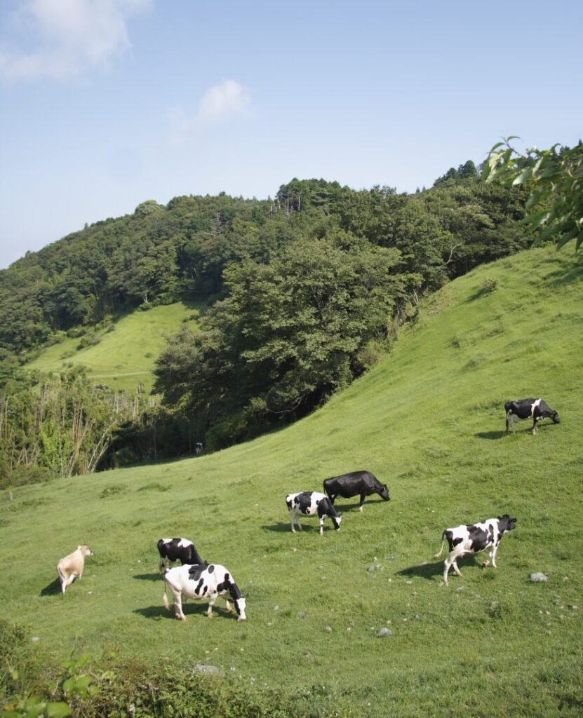 「牛舎で飼うよりも乳量は少なくなりますが、ストレスフリーな環境でのびのび育つ牛たちはとても健康で、足腰が強く、長生きしてくれるんです」と上芝さん。