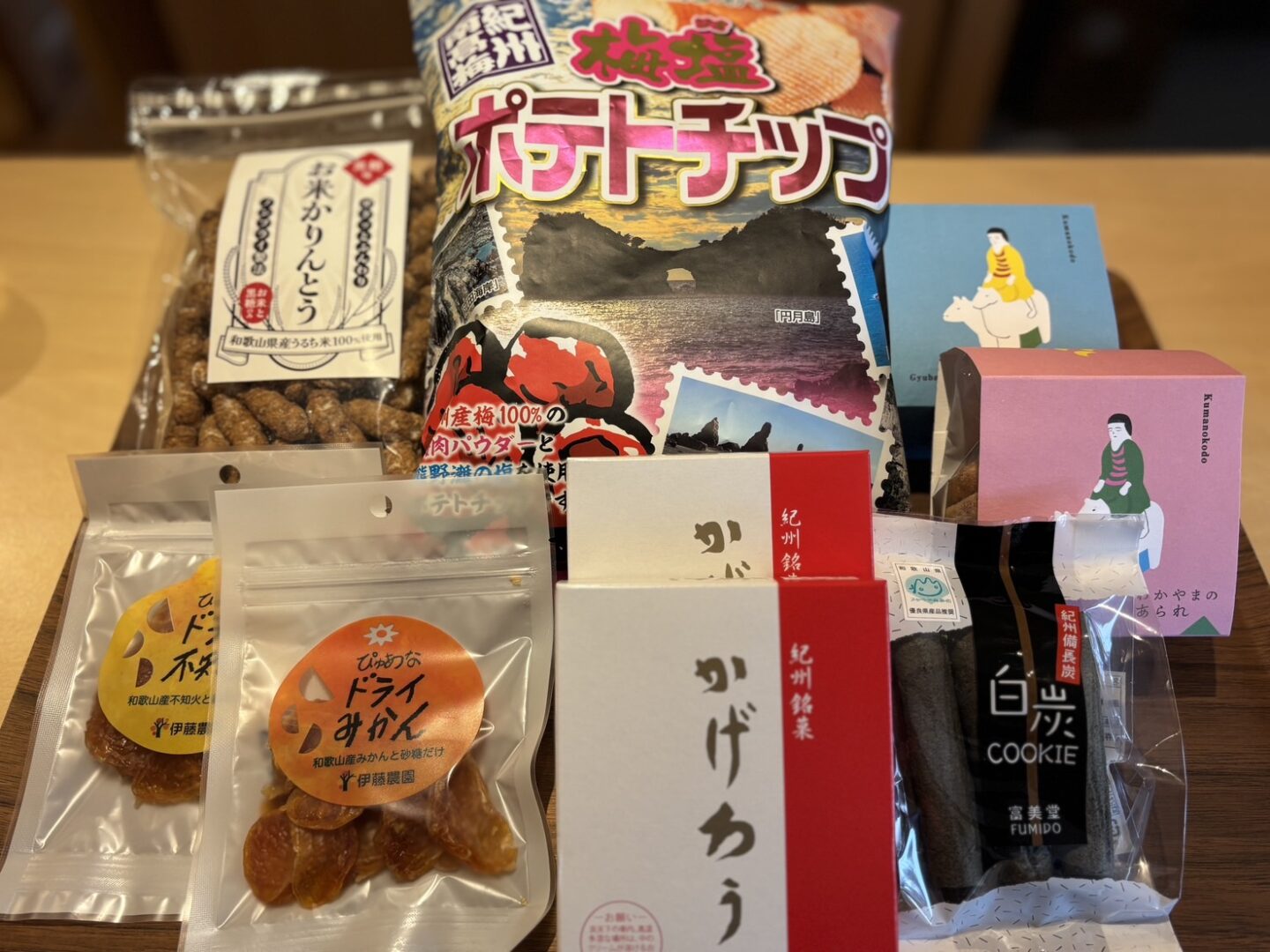 和歌山県の美味しいお菓子を揃えました。お土産の定番から、和歌山県でしか見られないご当地おつまみまで、「わかやまの美味しい」が揃っています。※季節、施設、人数ごとに提供物は異なります。