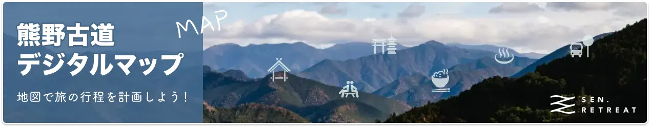 SEN.RETREATの最初の宿から15分ほど歩いた先、木々のざわめきと共にたどり着くのは、熊野古道・中辺路のはじまりとされる聖地「滝尻王子」。かつて多くの巡礼者がこの地で祈りを捧げ、長い旅路の無事を願いました。その清らかな空気はいまも変わらず、訪れる者の心を静かに整えてくれます。